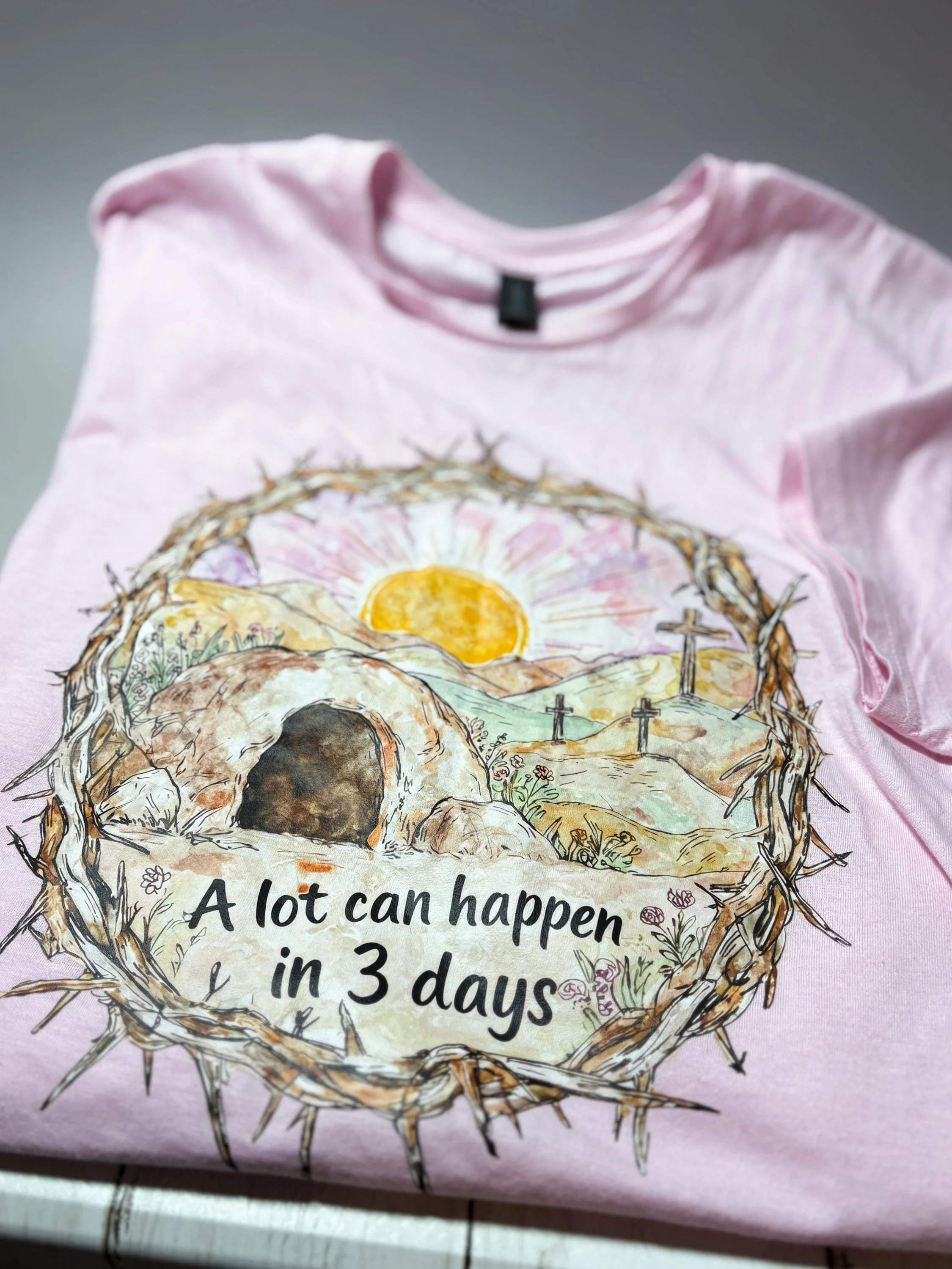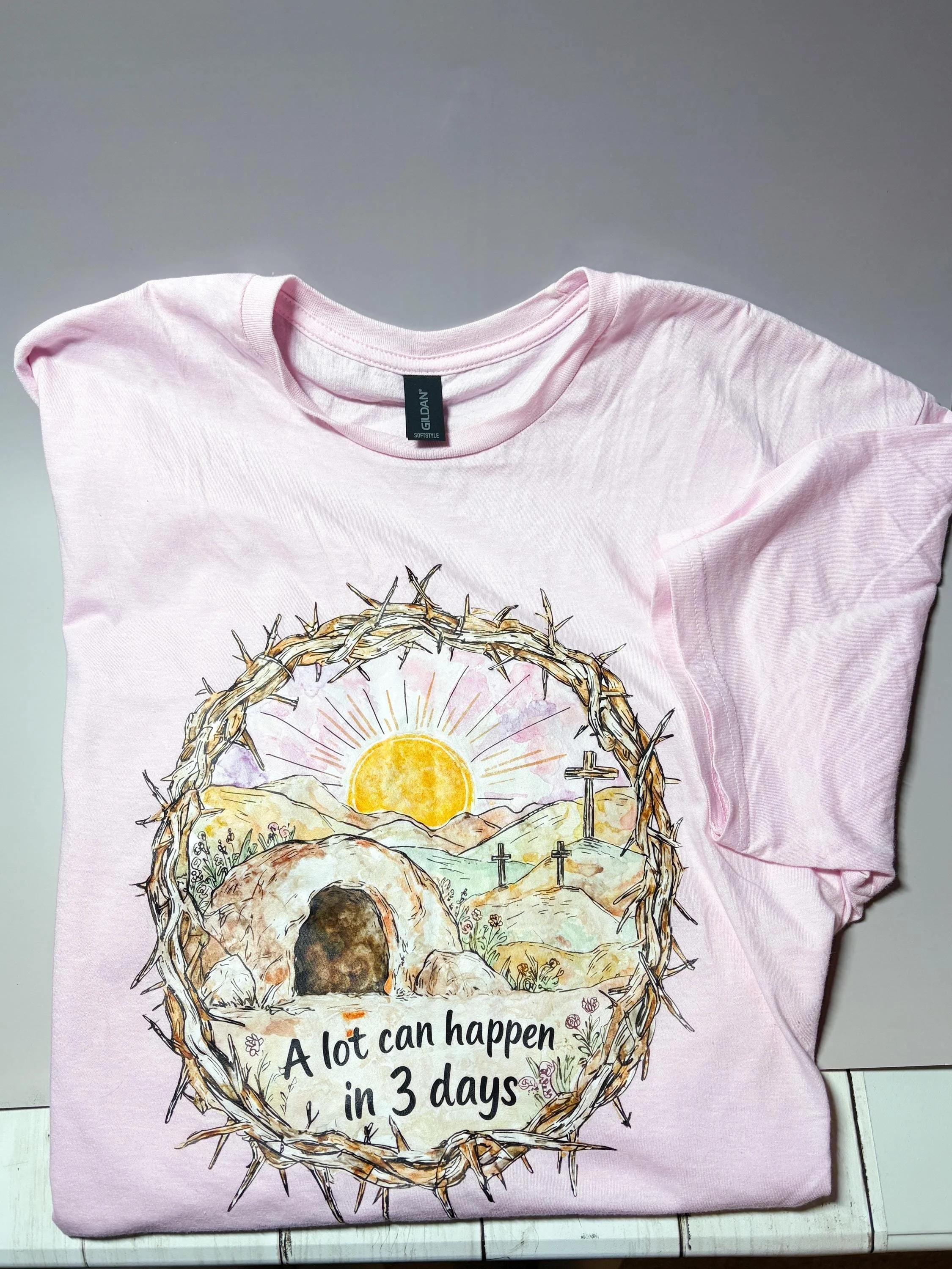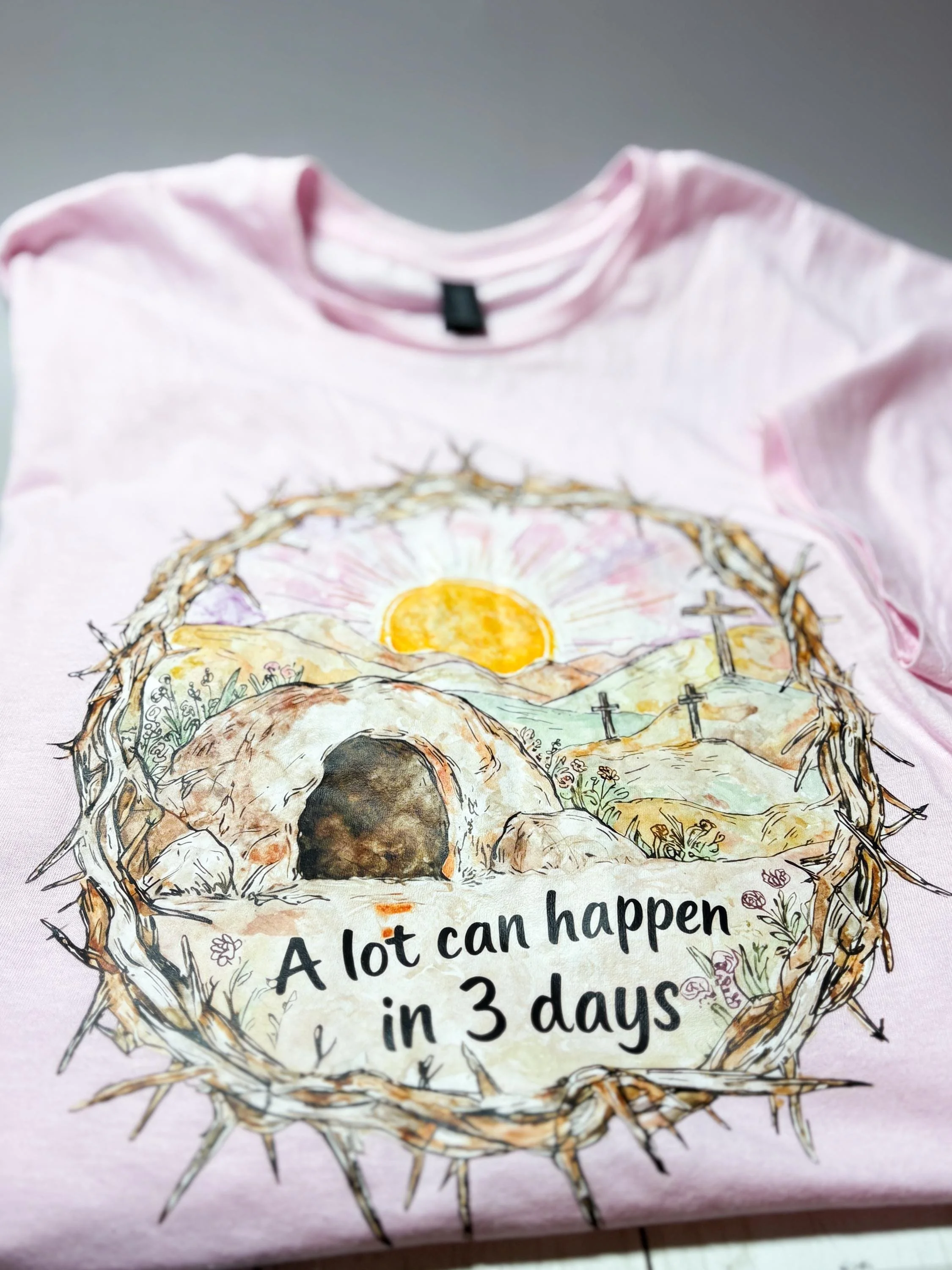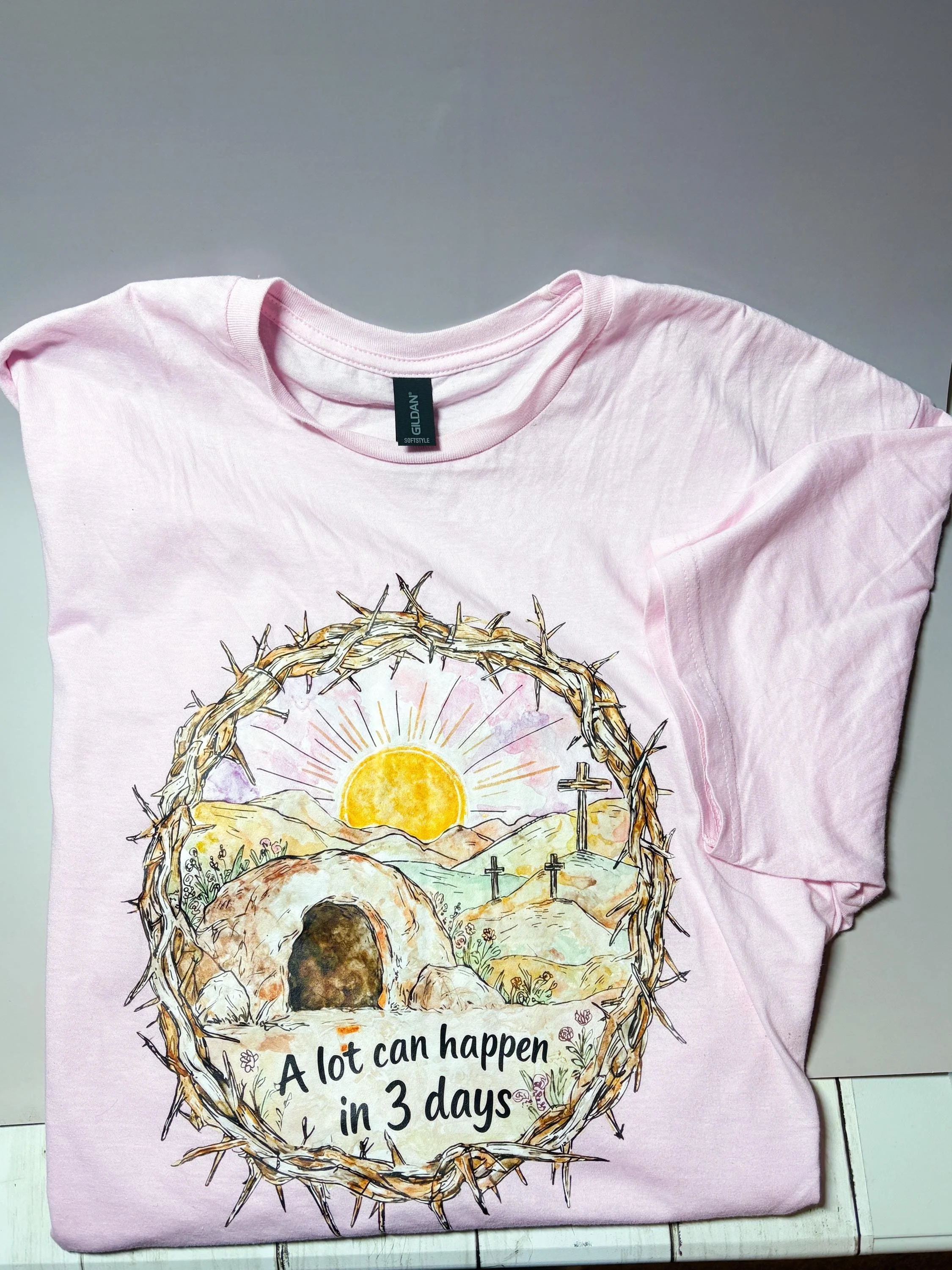 Christian Easter Shirt A Lot Can Happen in 3 Days He Is Risen Shirt Resurrection Sunday Shirt Faith Based Graphic Tee Easter Church Outfit