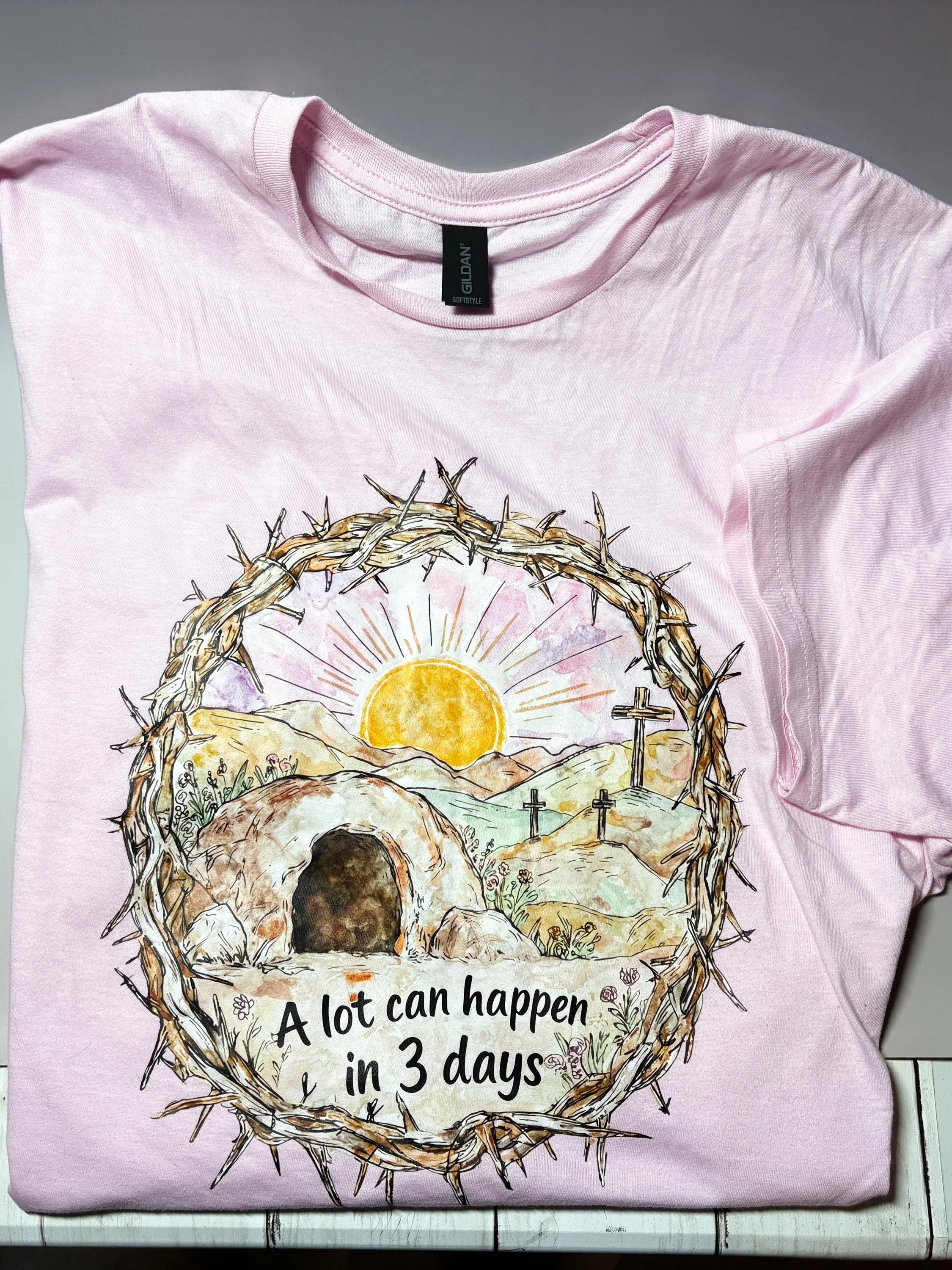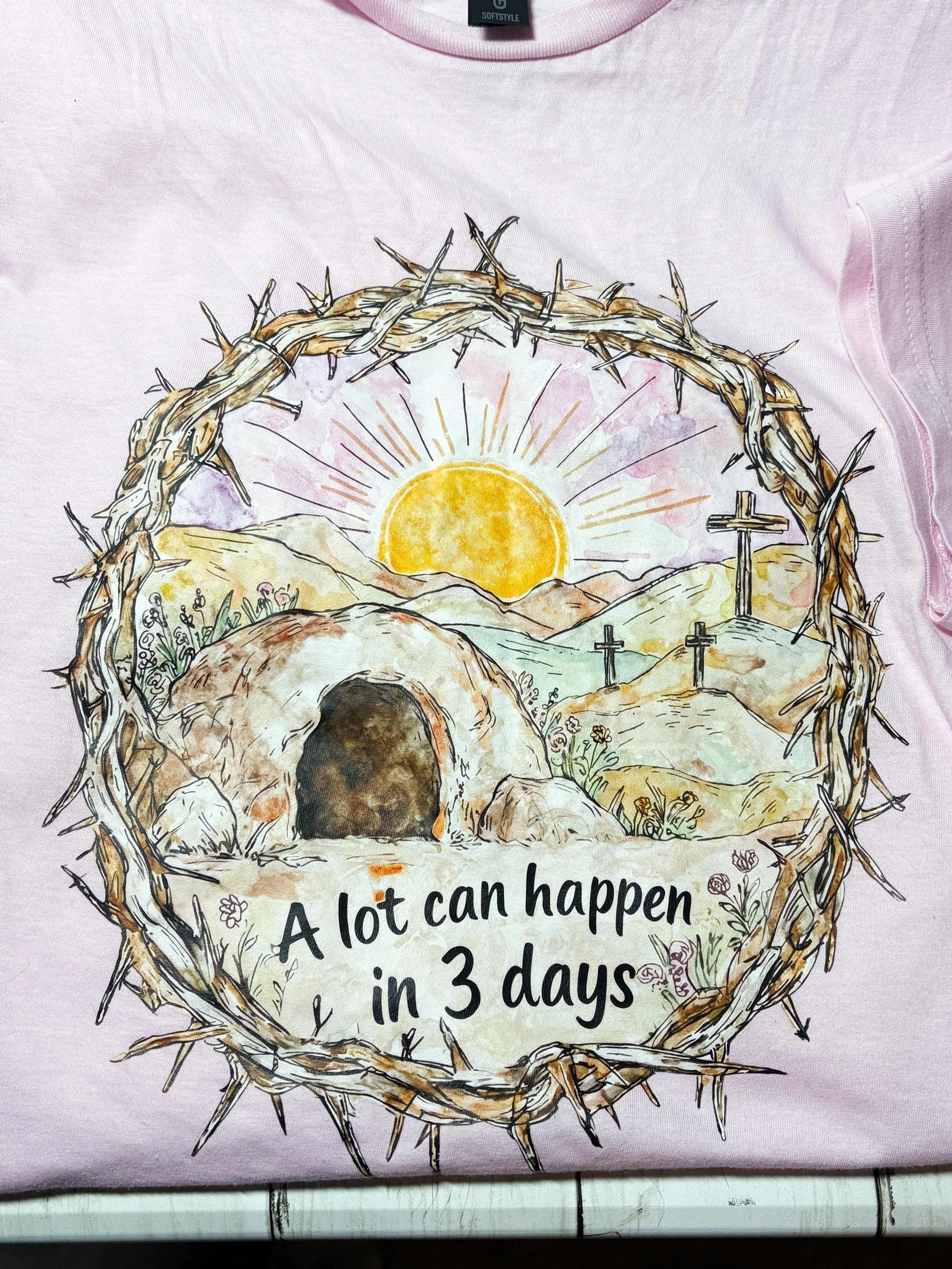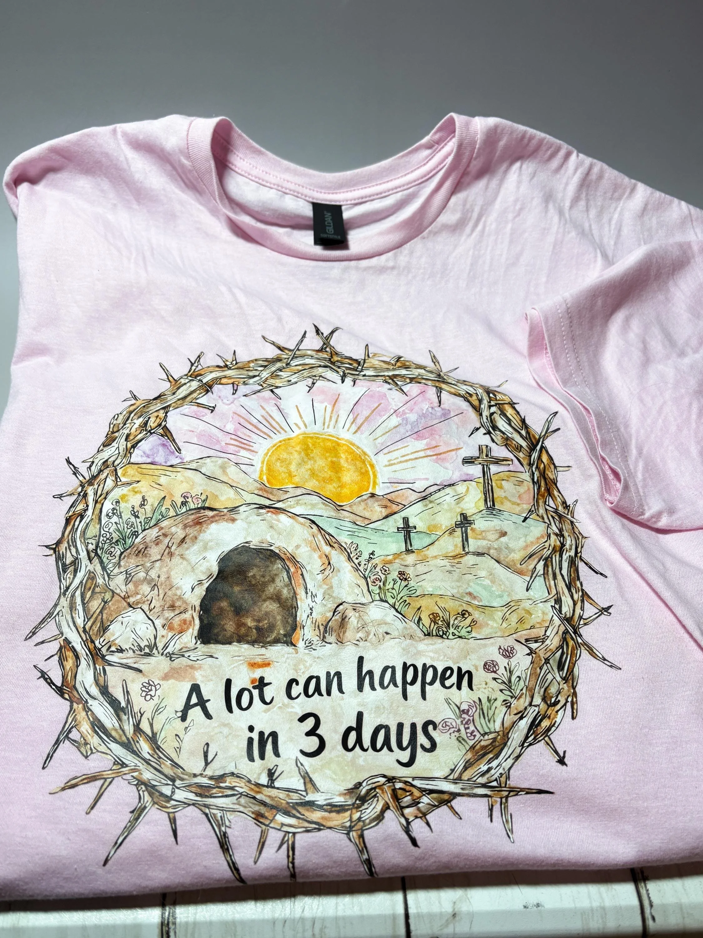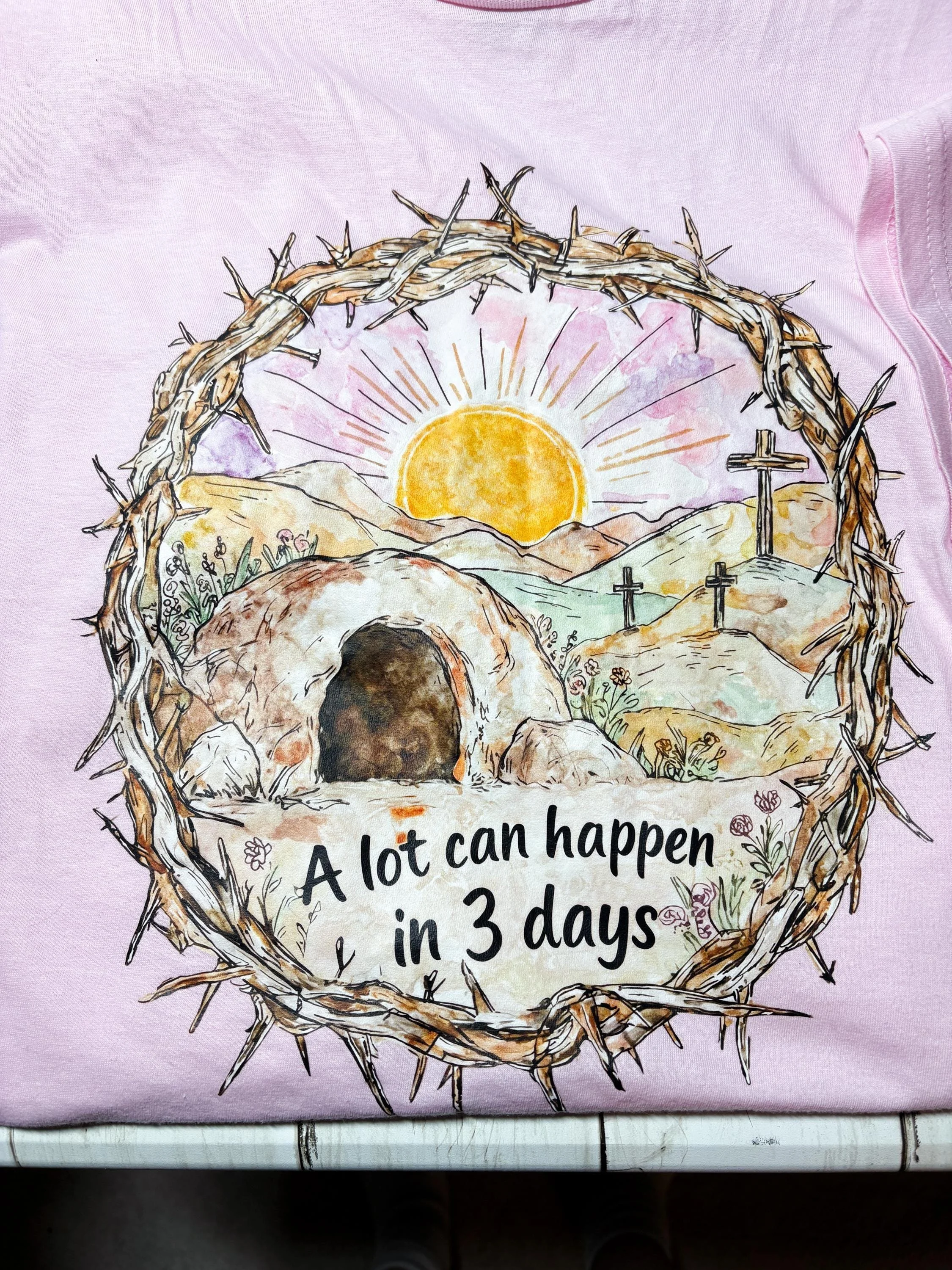 Christian Easter Shirt A Lot Can Happen in 3 Days He Is Risen Shirt Resurrection Sunday Shirt Faith Based Graphic Tee Easter Church Outfit