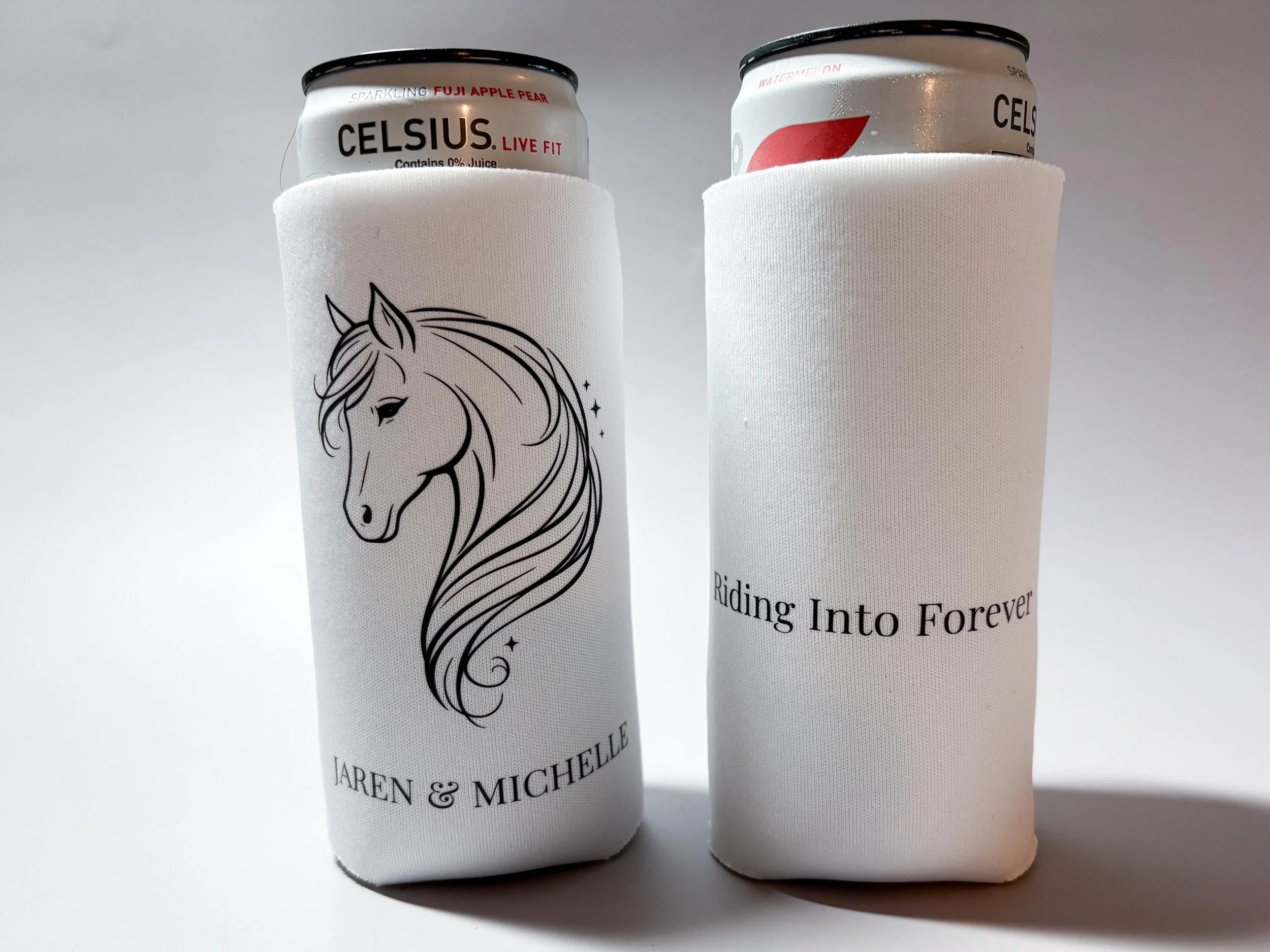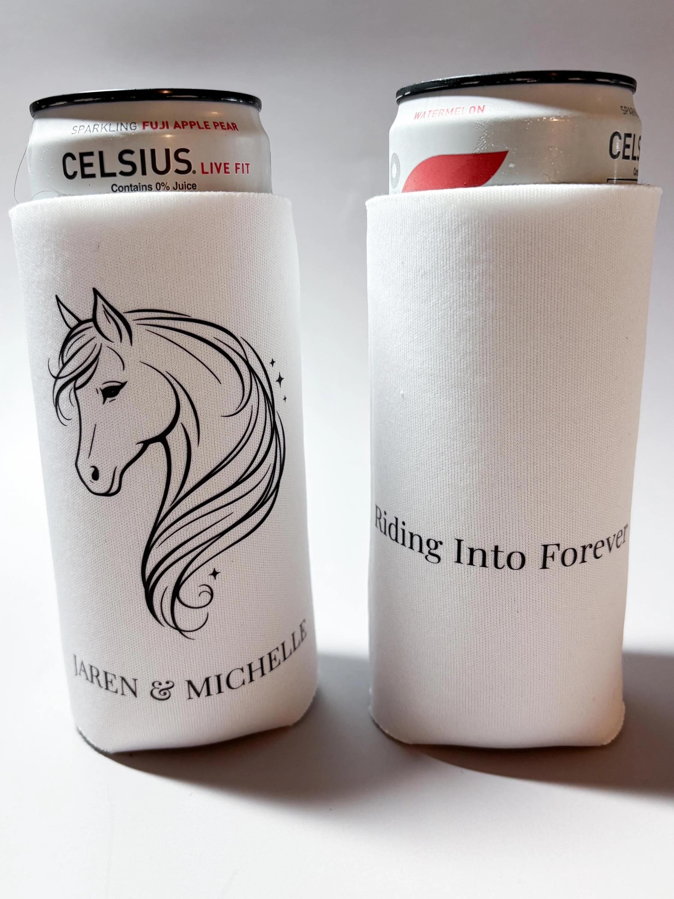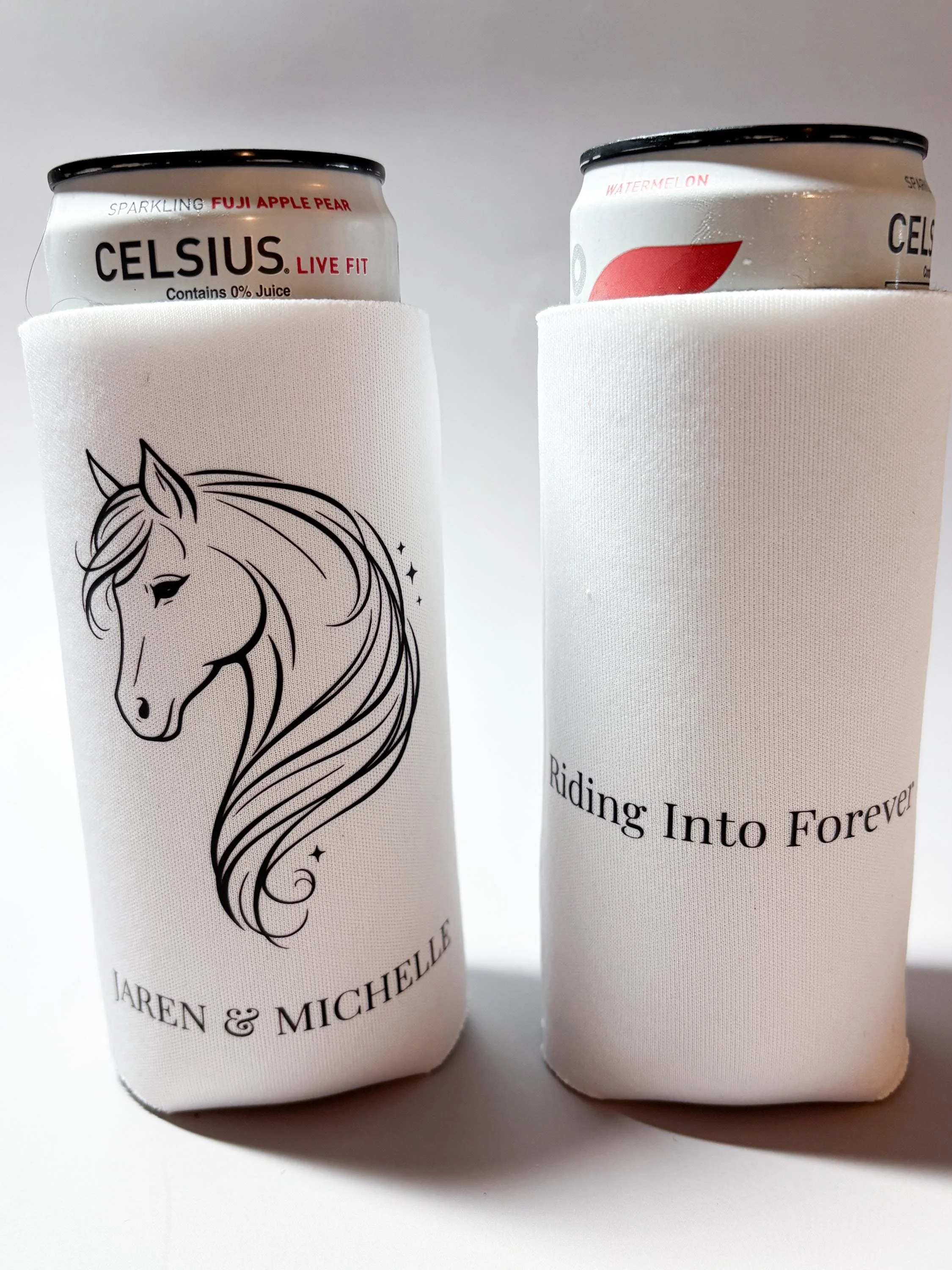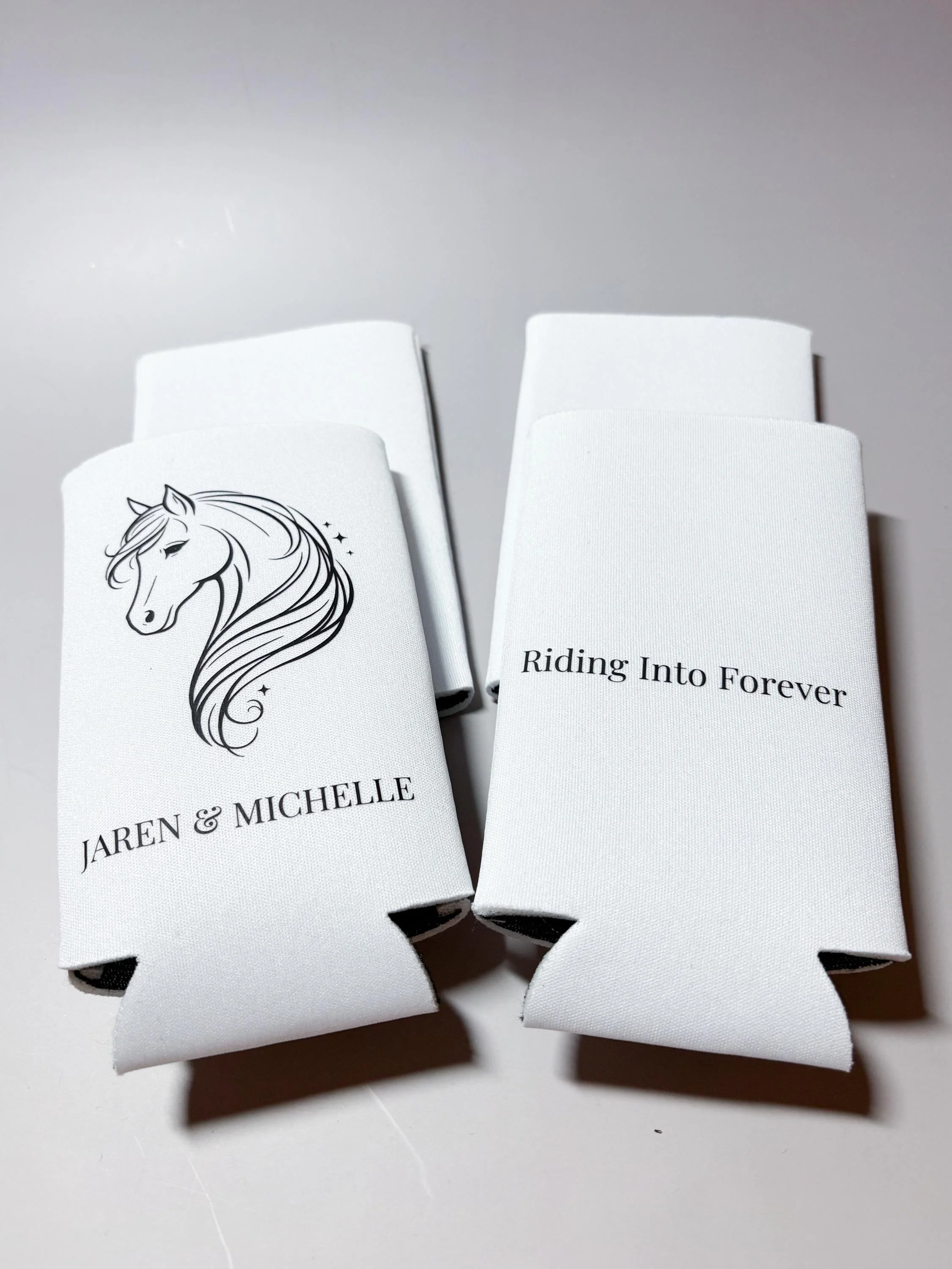 Personalized with your names and wedding date, these koozies are a unique and meaningful addition to your wedding day β especially for barn weddings, rustic venues, or horse-themed celebrations.