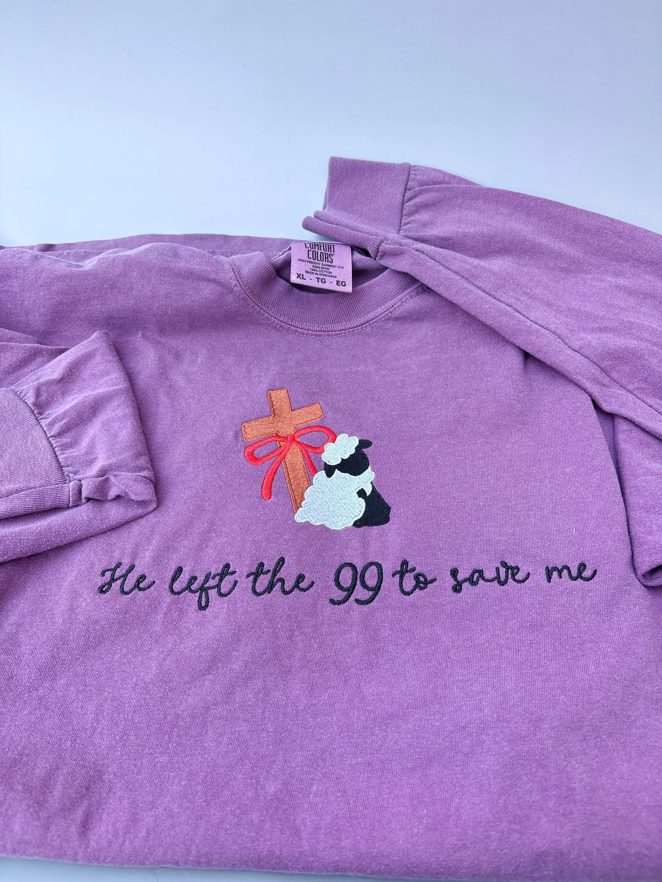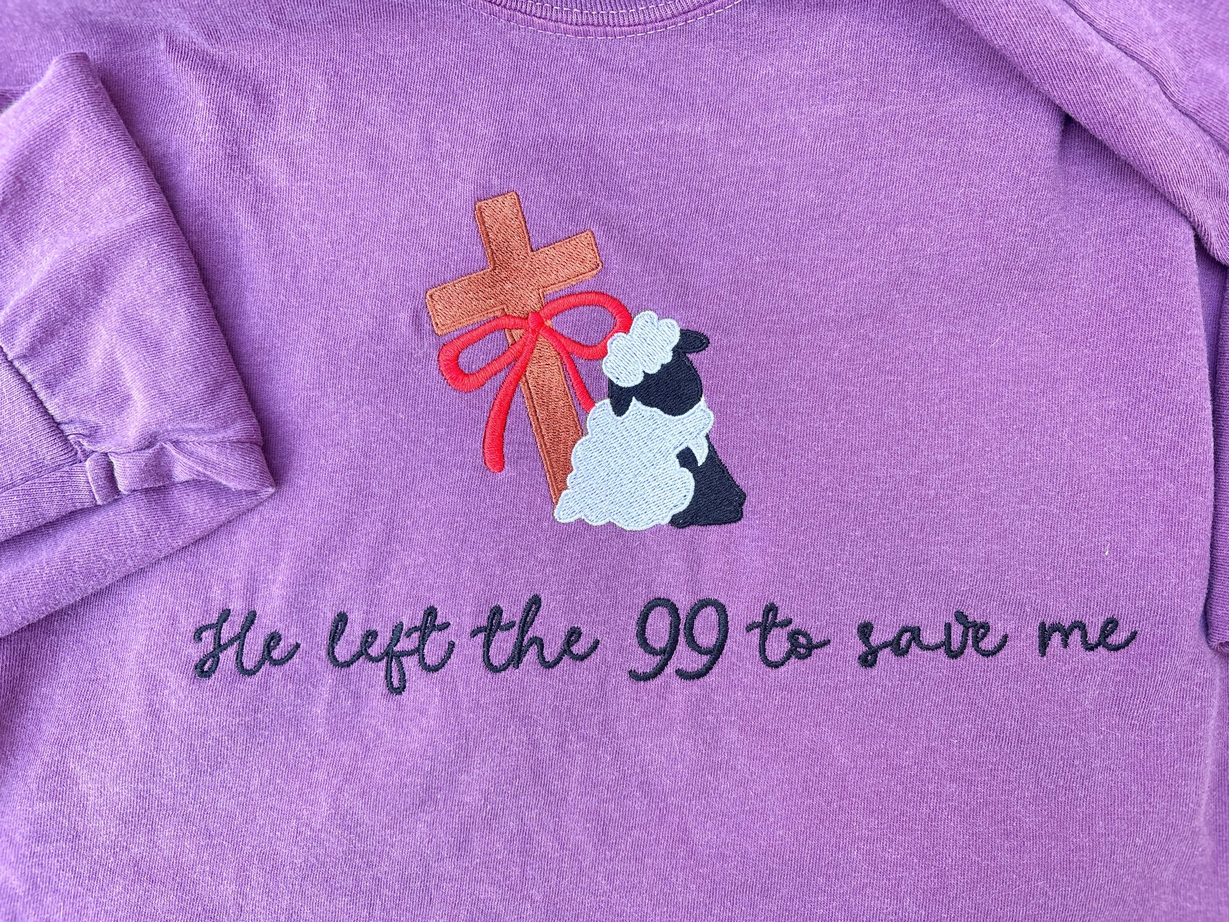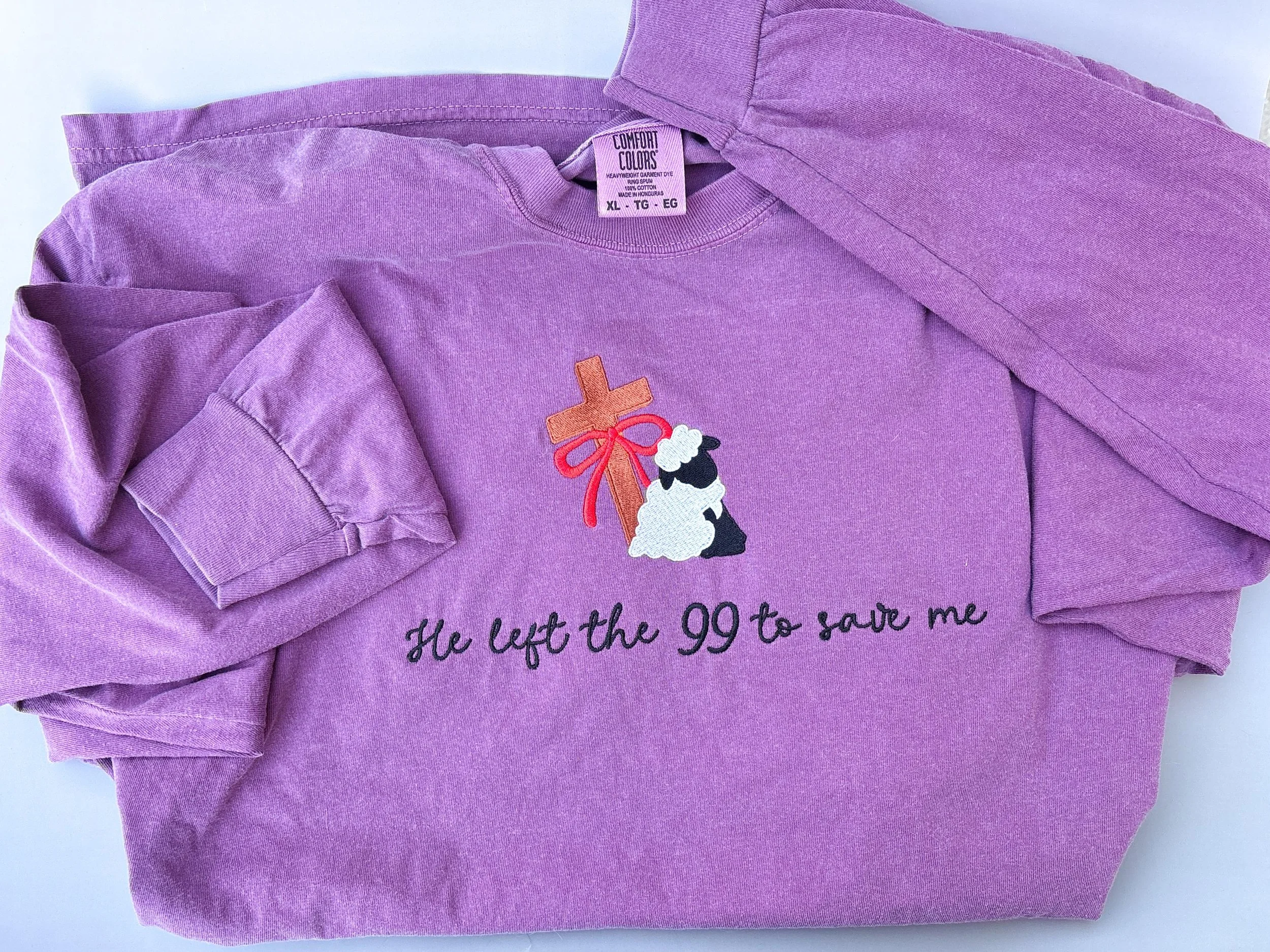 He Left the 99 to Save Me Shirt Christian Long Sleeve Shirt Faith Based Comfort Colors Tee Scripture Inspired Christian Apparel
