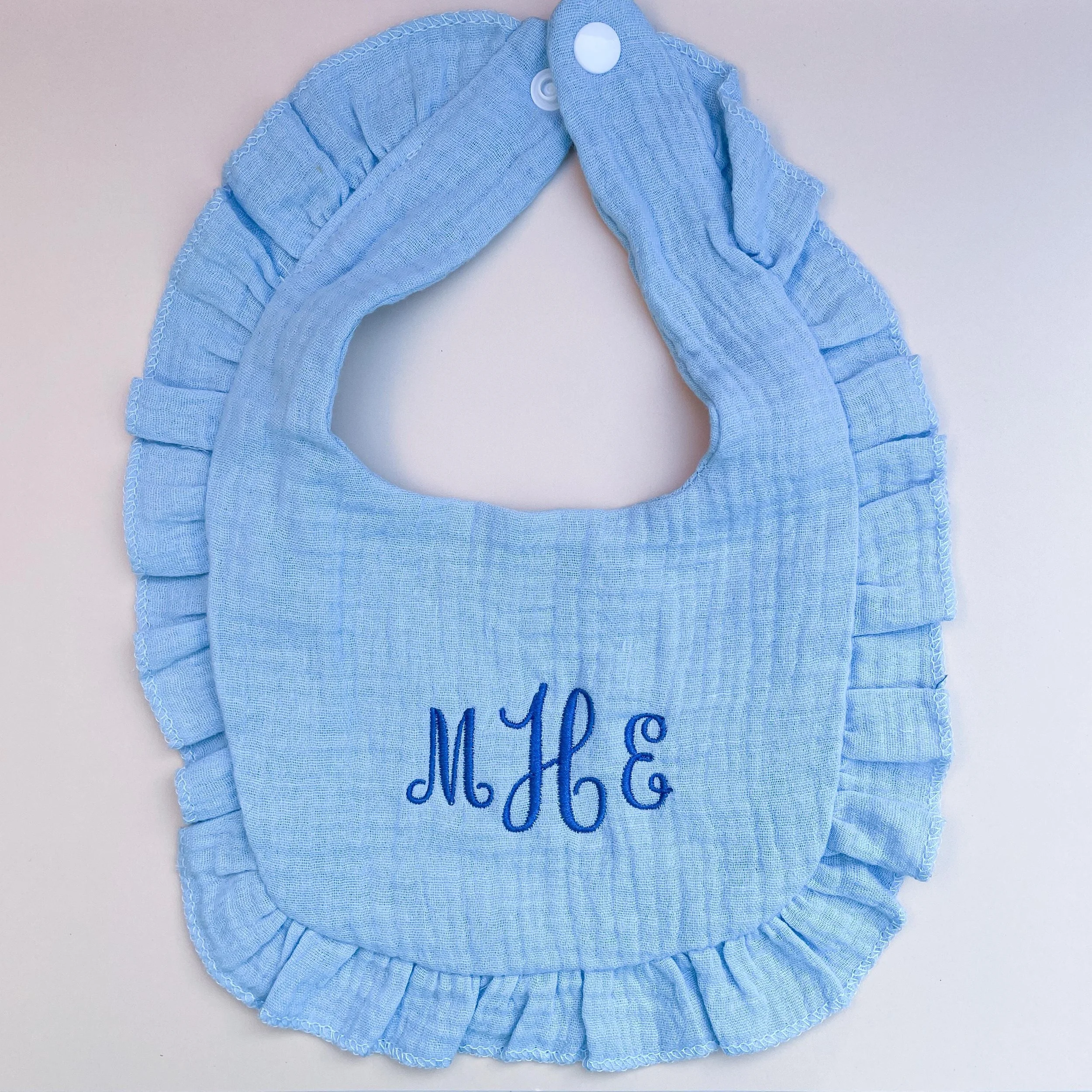 Monogrammed Baby Bib Embroidered Boy Baby Shower Gift Idea for Baby Boy Birthday Gift Idea Baby First Birthday Bib Infant Blue Bib