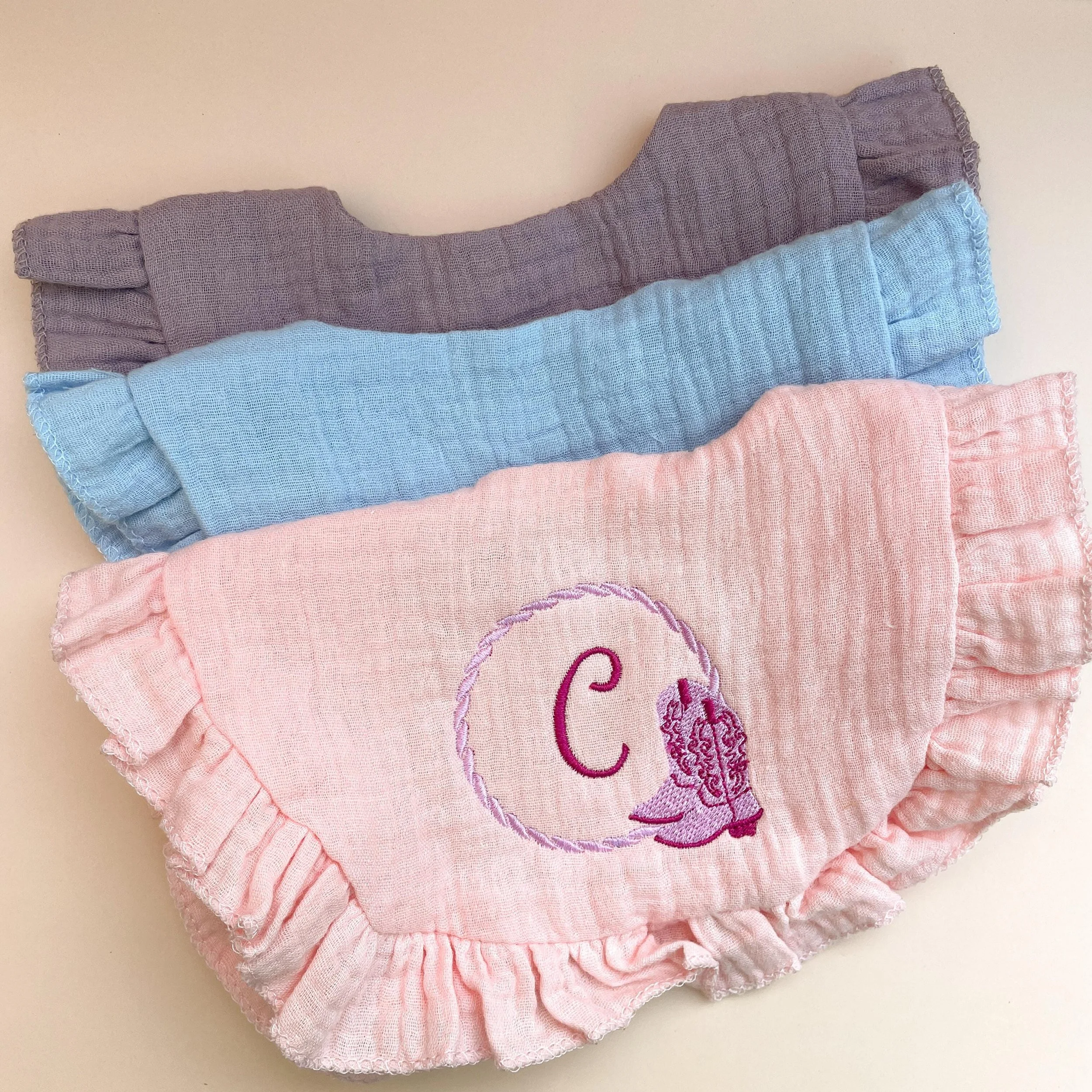 𝐃𝐄𝐓𝐀𝐈𝐋𝐒: 📌 4 layers of muslin cotton gauze for extra absorbant 📌 Bib measures 9.8"x9" and the neck measures 11" 📌 Machine washable, snap closure