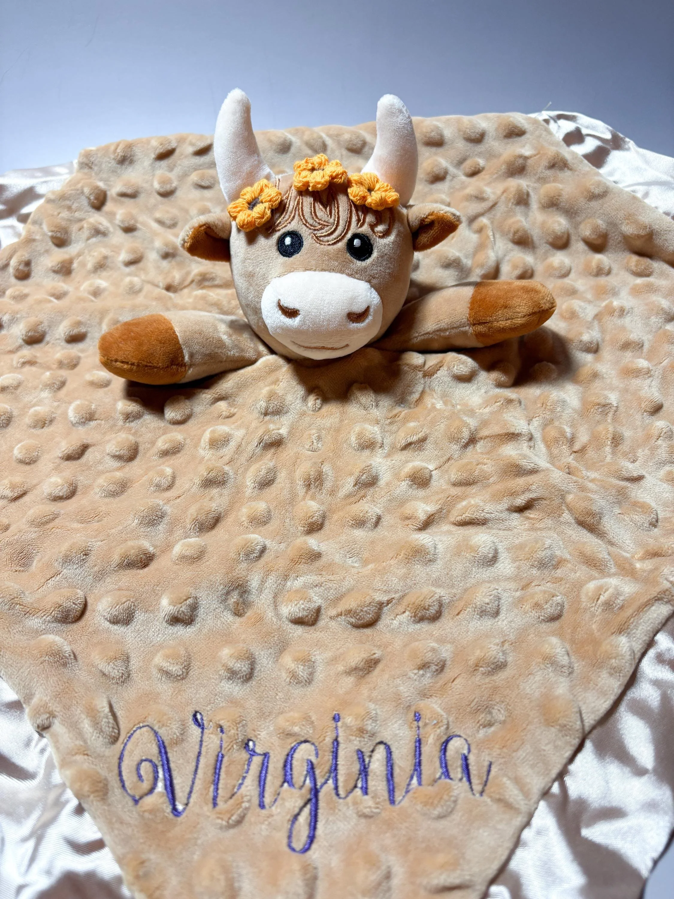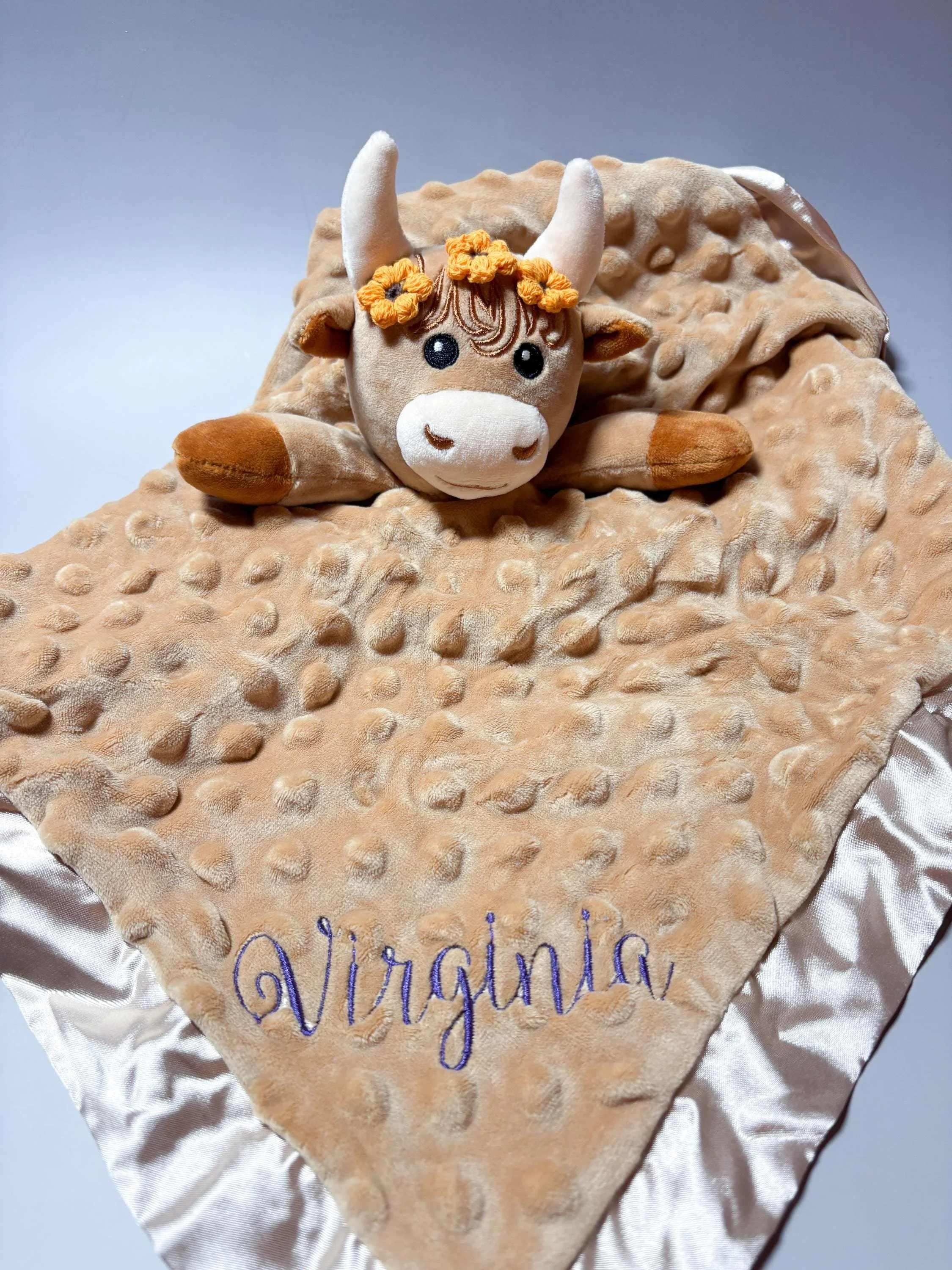 β’ Highland Cow Lovey β soft neutral tones with a silky backing for extra comfort