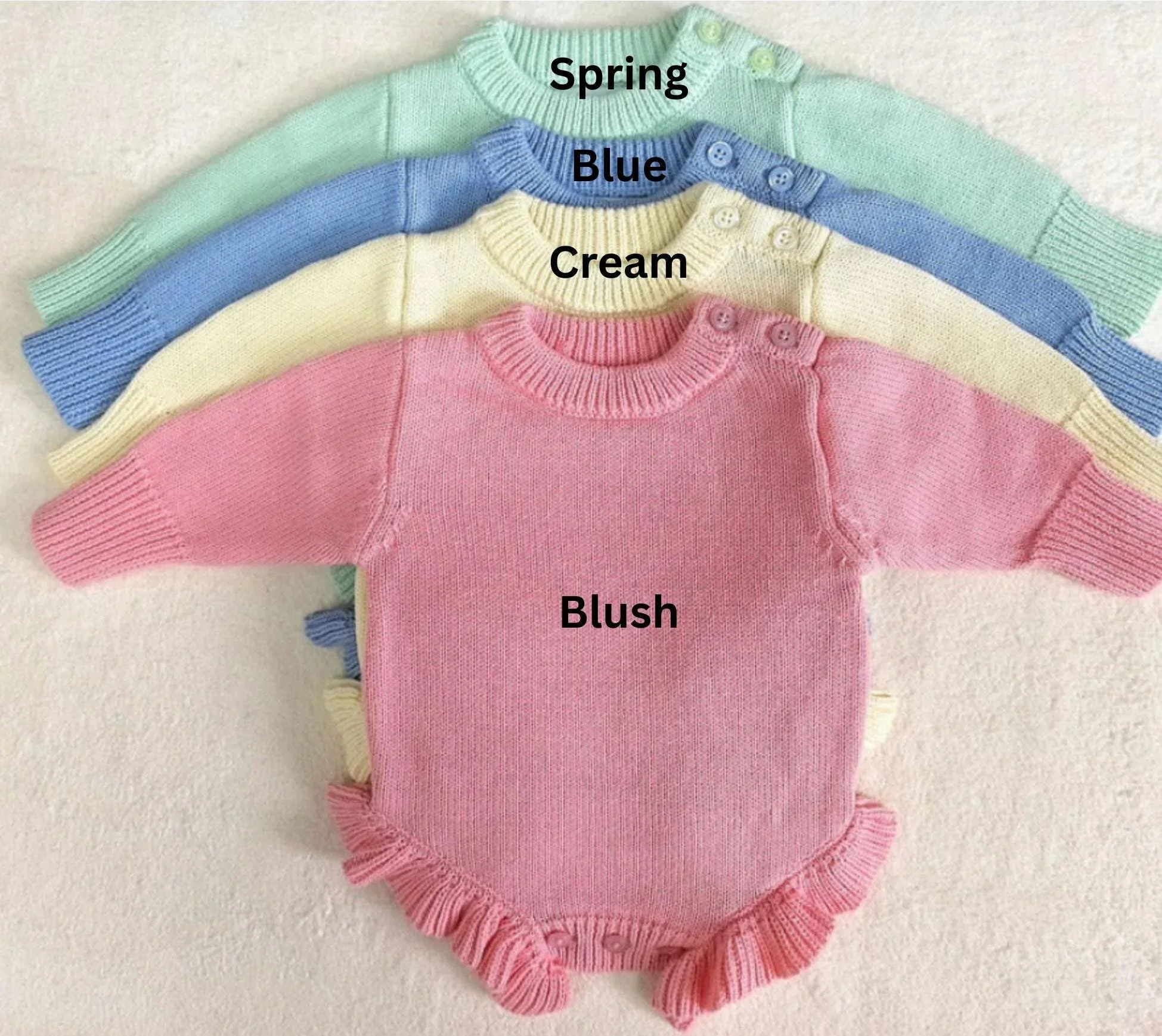 Personalized Easter Romper Christian Baby Easter Outfit Knit Baby Romper Monogram Cross Embroidery Heirloom Easter Outfit